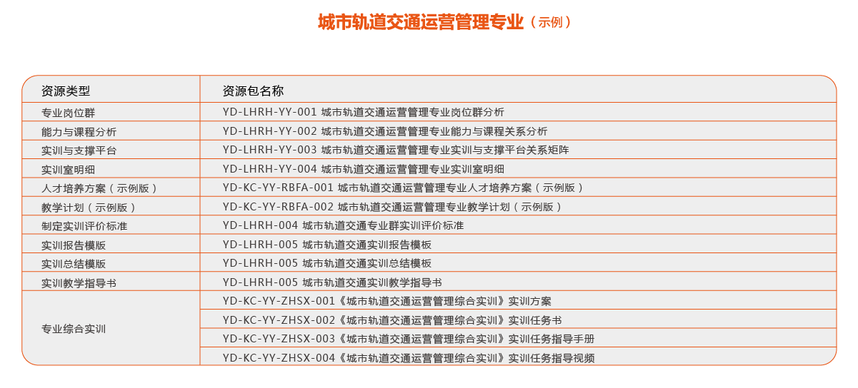 1.建設課程資源,支撐專業(yè)建設發(fā)展與人才培養(yǎng)需要。支撐專業(yè)覆蓋城市軌道交通通信信號技術、機電技術、運營管理、車輛技術,對標專業(yè)培養(yǎng)目標崗位群,針對專業(yè)涉及崗位完成典型工作任務所需能力訓練需求組織實訓,研發(fā)配套課程資源。