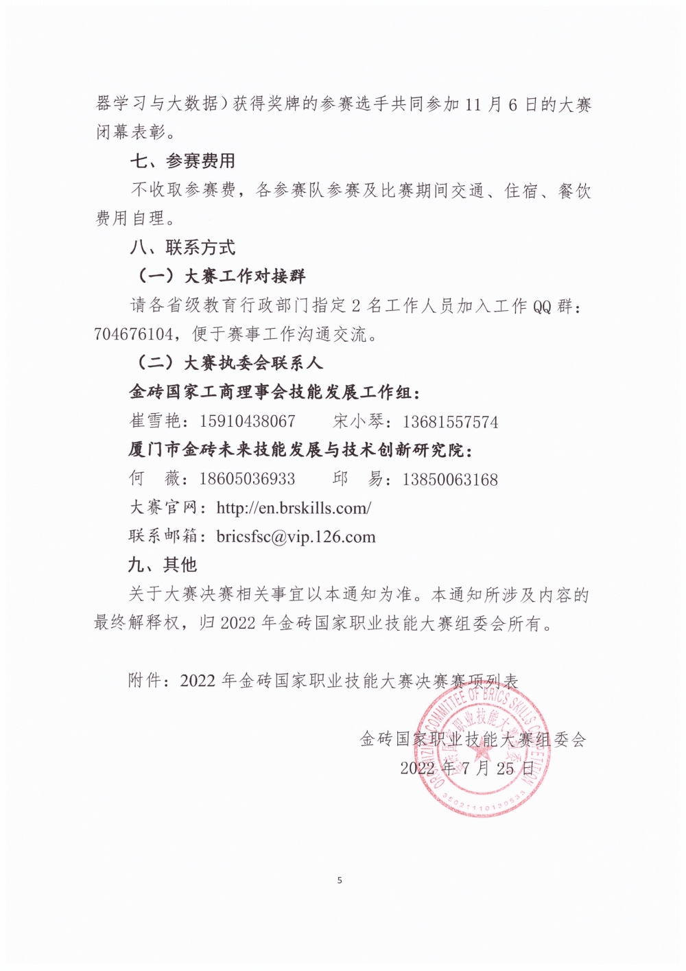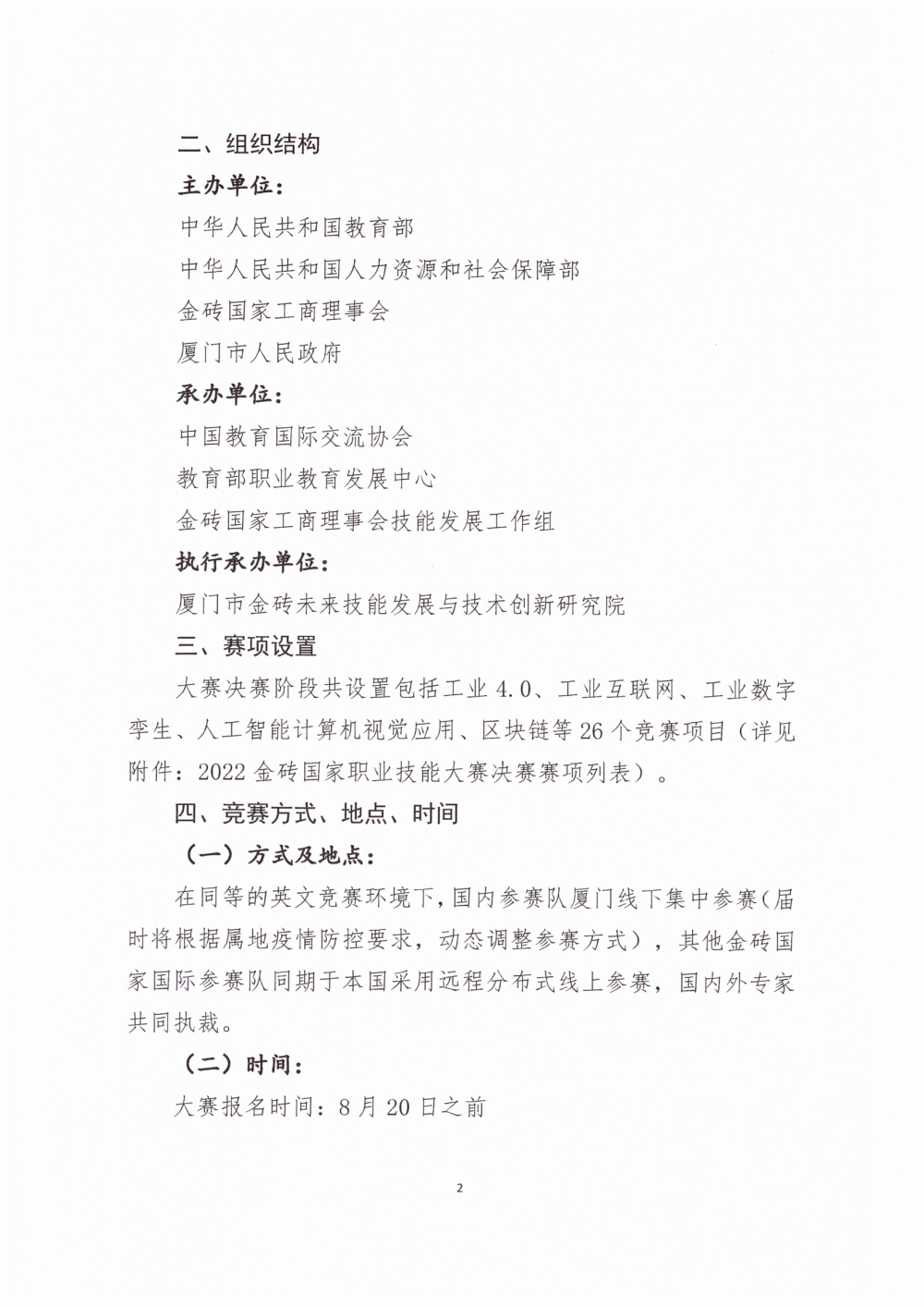 關于組織參加2022年金磚國家職業技能大賽(決賽)的正式通知