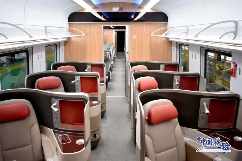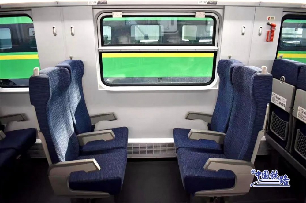二等座車客室中部也采用旋轉座椅,對活動車窗、內外風擋進行優化,增設壓力保護裝置,改善列車交會或通過隧道時空氣壓力變化對旅客乘坐舒適性的影響。